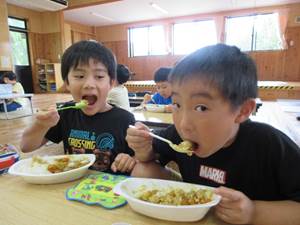 『学童特製ウインナーカレー』皆のおかわりで大きな鍋が空っぽになりました!
